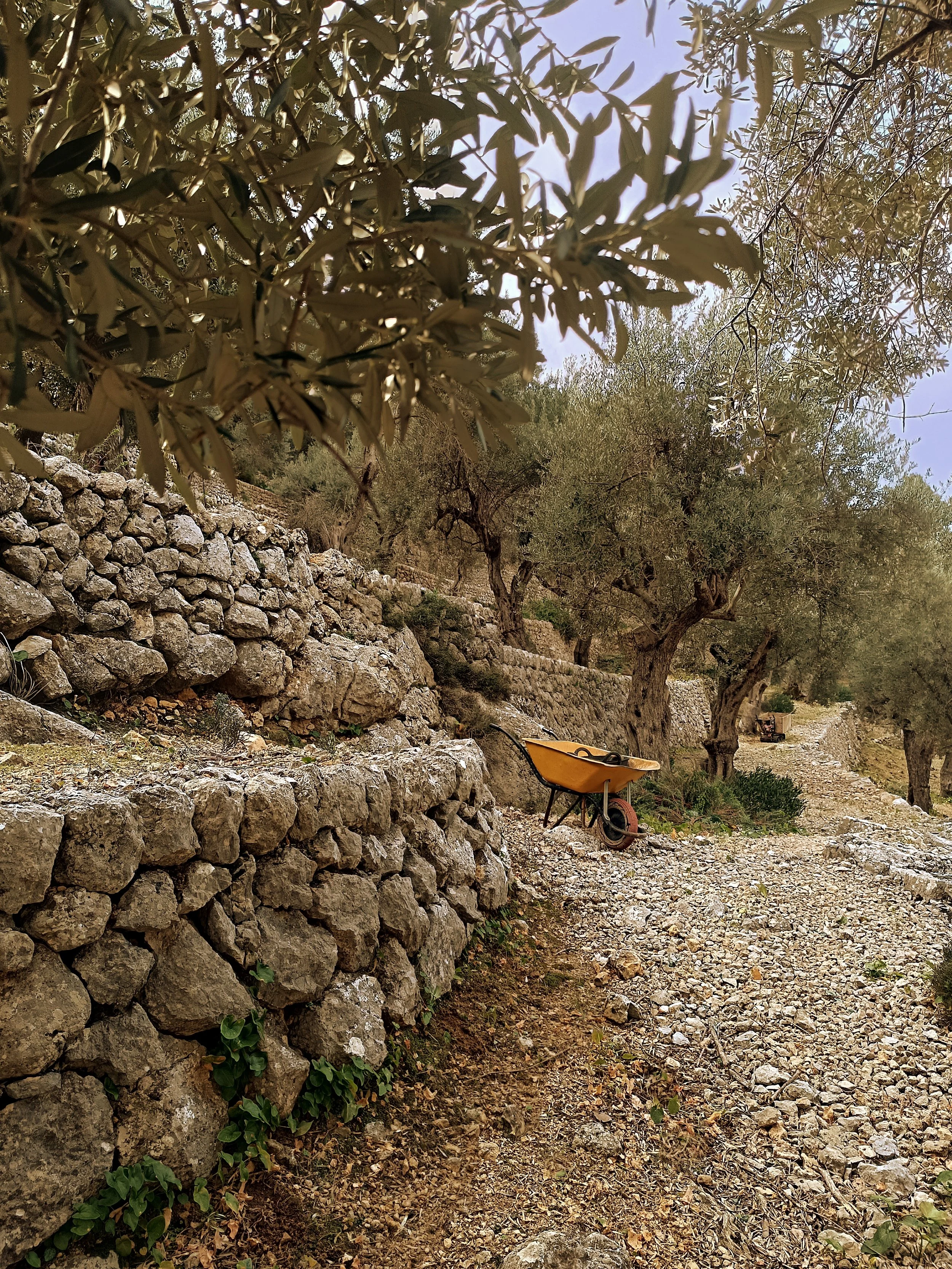 At the finca, your group takes part in hands-on seasonal land stewardship activities supporting the long-term care of the land. Depending on the season, this may include: such as olive tree care, dry stone wall restoration, or sustainable landscape work.Olive-tree care and regenerative farming practiceDry stone wall restoration using traditional techniquesLandscape maintenance supporting biodiversity and erosion control in the Tramuntana UNESCO World Heritage Site